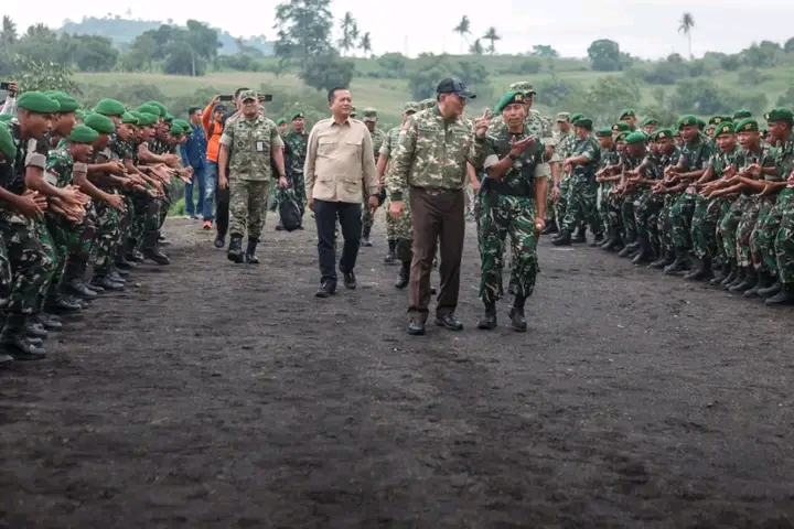 Dompu, newsline.id — Menteri Pertahanan RI Sjafrie Sjamsoeddin meninjau Markas Brigif TP 31/Perisai Sakti dan Yonif TP 875/Sangga Yudha Perkasa di Doro Mboha, Desa Soritatanga, Kecamatan Pekat, Kabupaten Dompu, Sabtu, guna memastikan kesiapan satuan teritorial pembangunan yang telah ditempati prajurit sejak November 2025.